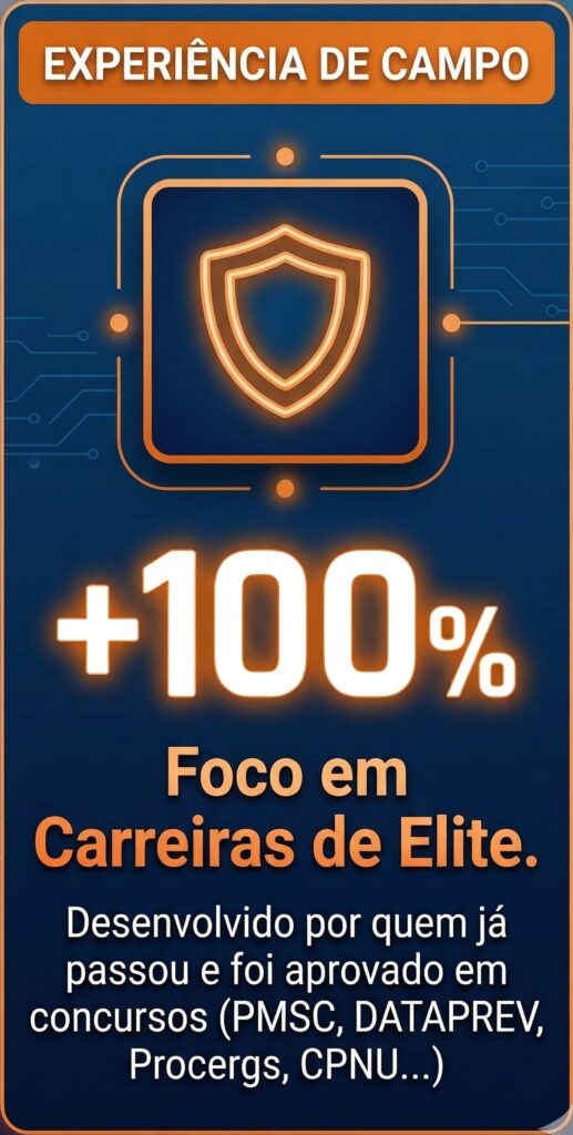 Para entender a lógica e parar de apenas decorar textos. As bancas mudam as palavras para te confundir. Em vez de decorar parágrafos de manuais, você entende o funcionamento dos conceitos, ganhando segurança para marcar a alternativa correta em qualquer questão.